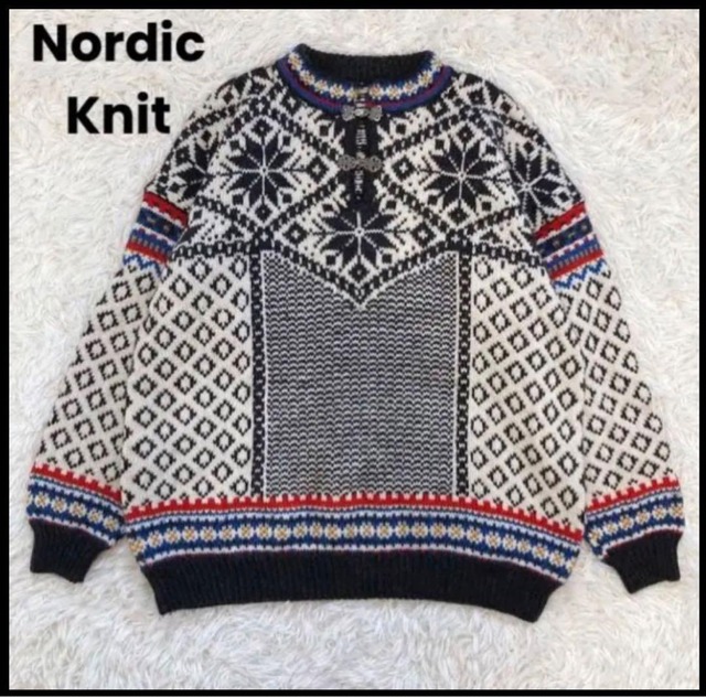 ご覧頂きありがとうございます♪ ……………………………………………………………………………… ✅ブランド、アイテム Nordic Knit ノルディックニット ニット セーター メタルフック ✅色 ブルー 青 ネイビー 紺 ホワイト 白 レッド 赤 イエロー 黄 ✅サイズ タグ表記 なし(XLくらい大きいです 肩幅 約70cm 身幅 約65cm 着丈 約69cm(スタンドネック除く) 袖丈 約53cm *平置き採寸です サイズはあくまで商品に表記されたサイズです。 メーカーやデザインによってバラつきがありますので必ず実寸を参考にご検討お願い致します。 ✅特徴 めちゃくちゃかわいい柄のニットです♡ 雪柄やフェアアイルのミックスでカラフルなマルチカラーは存在感抜群です★ 1点で主役アイテム間違いなしのお品です♪ 素材等のタグがないお品ですが肉厚であったかいです♡ ✅状態 メタルフック1つ欠品していたのでデザイン違いますがお付けいたしました。 味があっていいと思います。 年代の古い物になります。 古着に慣れている方でしたら問題なく着れるレベルです。 古着ならではの風合い、味をお楽しみ頂ける方のご購入をお願い致します。 ✅ご注意 ・簡易梱包、送料節約にご協力お願い致します。 ・著しい汚れ、破れ、穴などございましたらご連絡下さいませ。 ・色味や質感は出来るだけ実物に近く編集しておりますがお使いの端末やモニターによって若干の誤差があるかもしれませんのでご了承下さいませ。 ・ご不明な点はいつでもコメントお待ちしております‼︎