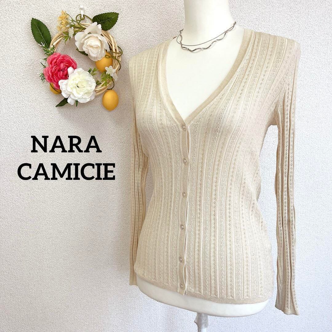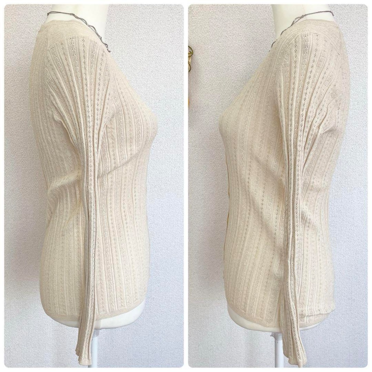 花柄模様編みのリブカーディガンでゴールドのラメ系が混紡された華やかで品のあるお品です☆