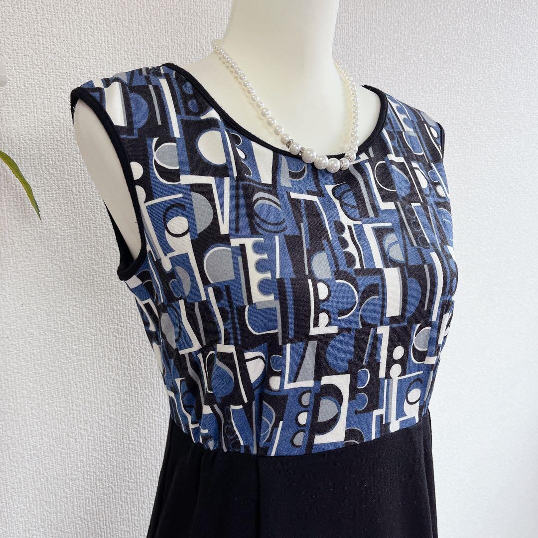 ジオメトリック柄との切替えがスタイルアップのポイントになったコクーンシルエットの膝丈のワンピースです♪
