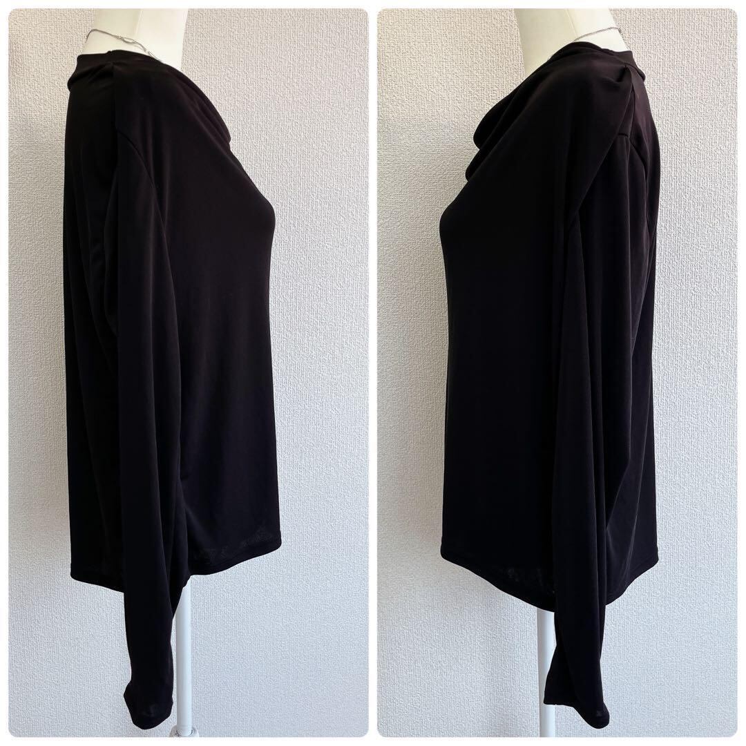 襟元のドレープや抜け感のあるドロップショルダーに袖口にも立体的なダーツが入った緻密なパターンのおしゃれな1着♪