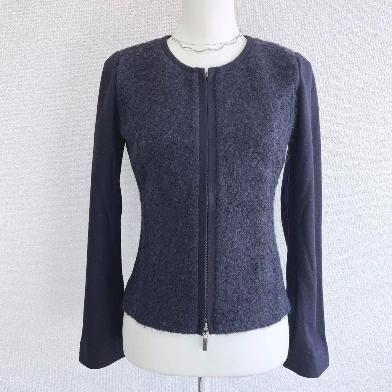 ☆Wジップ☆NARACAMICIE ナラカミーチェ ノーカラージャケット ウール 上品 ネイビー S