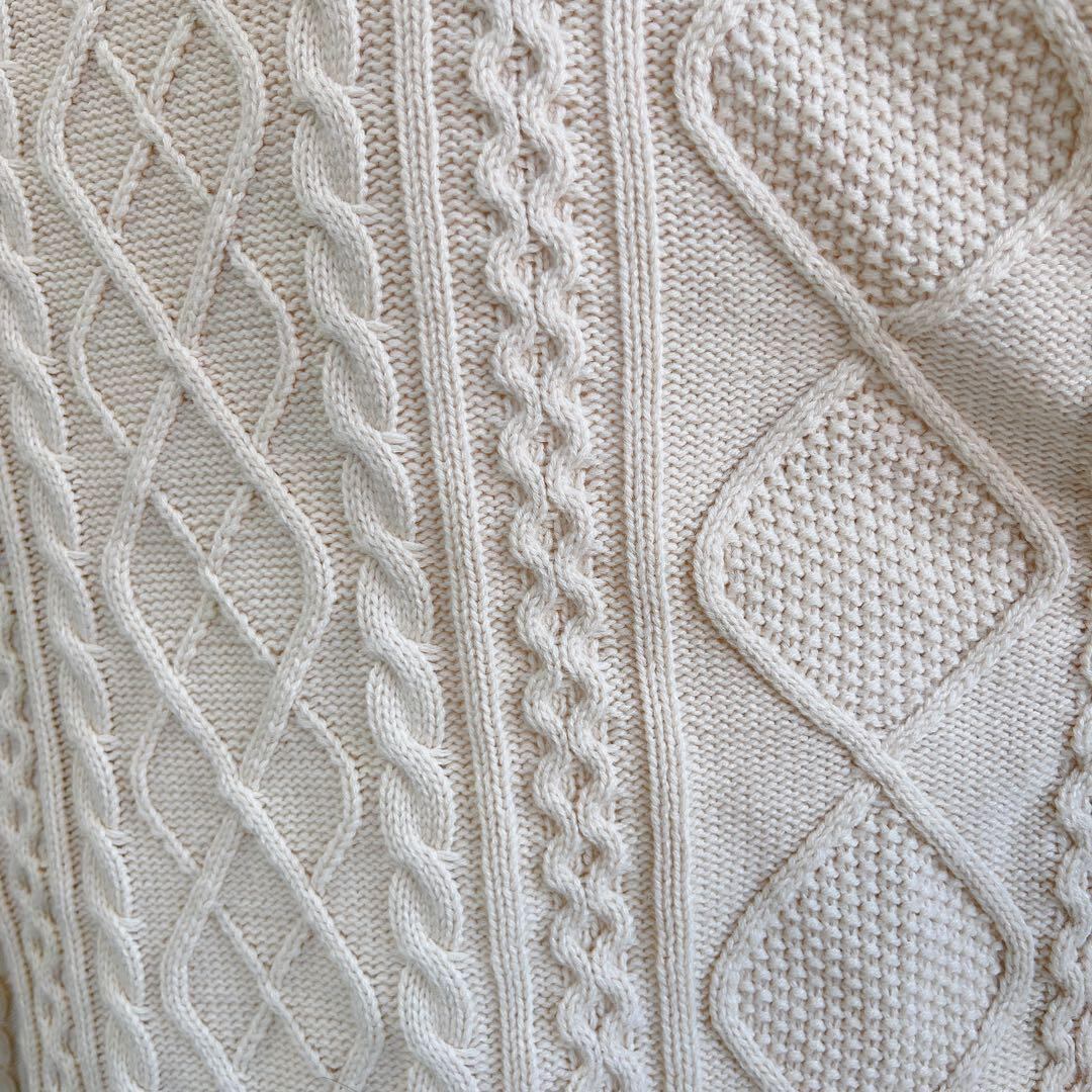 フィッシャーマンニットのようなざっくりした模様編みが特徴的なニットです♪