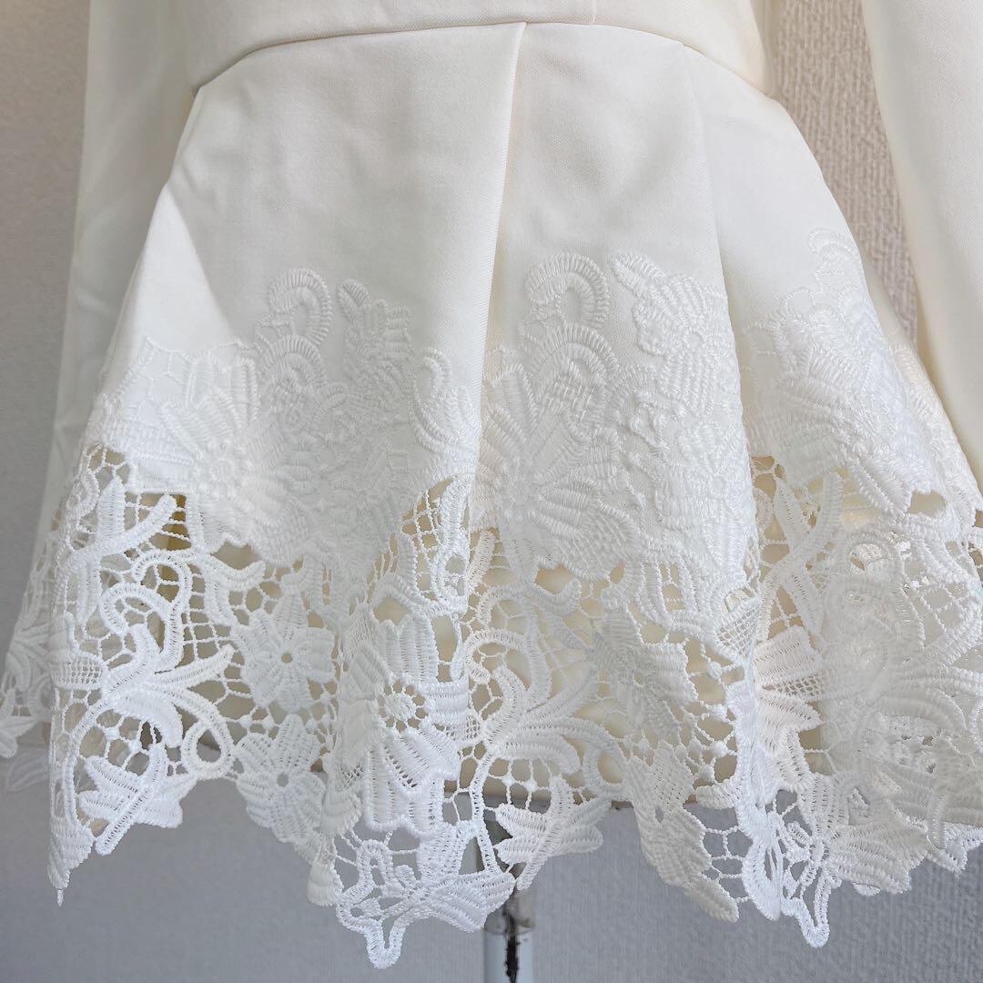 裾にあしらわれた繊細で豪華な立体刺繍レースが、歩くたびに優雅に揺らめき、まるでオートクチュールのような高級感を演出☆