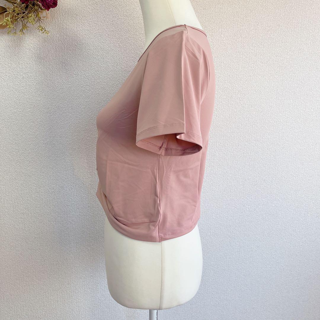 裾がクシュッとクロスになったヨガやピラティス、エアロビなどで使えるかわいいウェアです♪