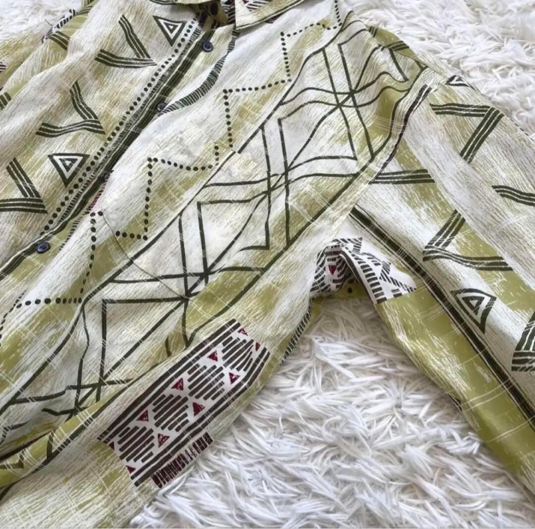 ☆1点もの☆ジャン二バレンチノ 幾何学柄ビッグシルエットシャツ グリーン系 L
